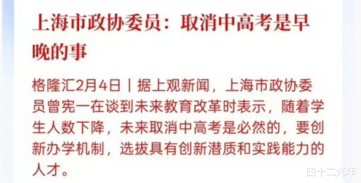 本年也有访佛的样式,上海就有东谈主提到说:取消高考是朝夕的事!
